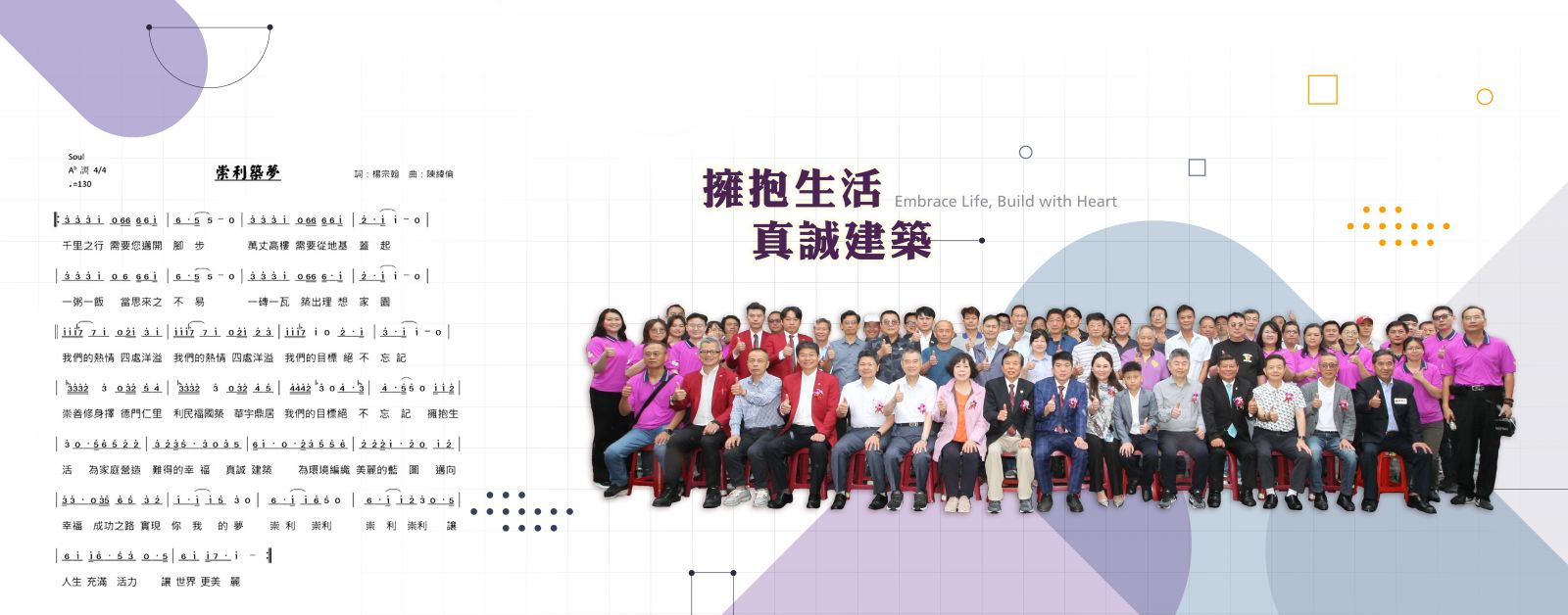 崇利建設股份有限公司─承襲母公司歷史悠久的傳承與價值,並為集團注入全新活力而誕生,秉持著「崇高的理念與利他主義」的使命,深耕於蘆洲區域,並懷抱著「擁抱生活‧真誠建築」為服務宗旨,致力於創造不僅僅是建築,更是深刻融入當地文化與社區需求的生活空間。